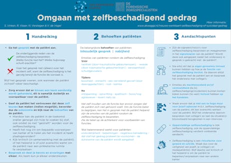 De kaart legt uit waarom mensen zichzelf beschadigen en welke factoren dit gedrag beïnvloeden, zoals emoties, impulsiviteit of stress. Het benadrukt dat begrip en een reflectieve benadering van de professional belangrijk zijn.